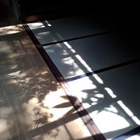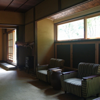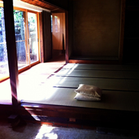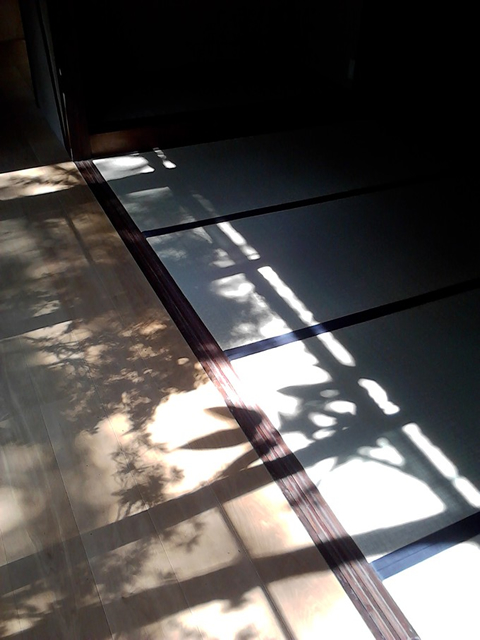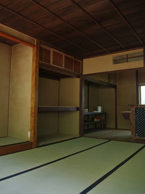 冬には障子、ふすまを入れられます。畳の縁は麻地の藍染です。 |