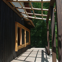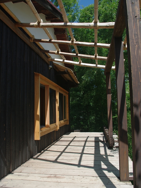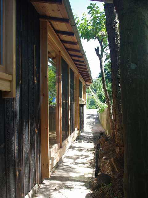 外部の杉板焼いて炭化させました。長持ち、防虫、味わいが引き出されています。 |
