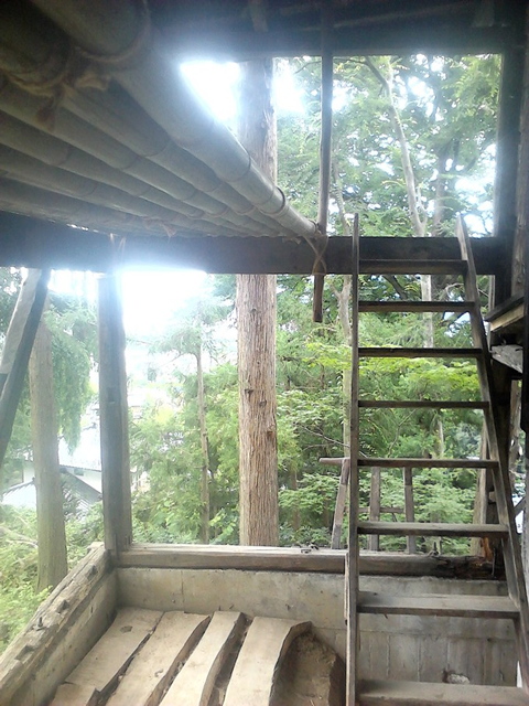 20年以上使ったスギの足場板。竹林の向こうは棚田です。 |
