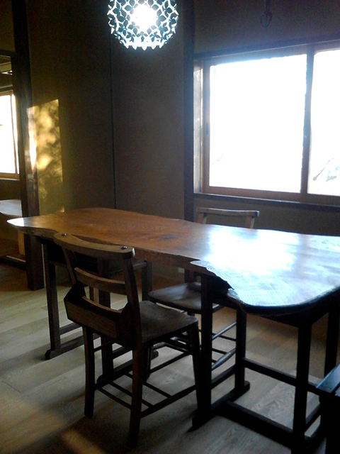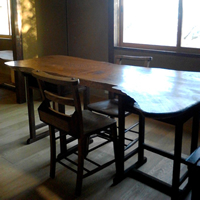 栗のテーブル:栗の一枚板にケヤキでうめきををしてうるしをぬりました。 |