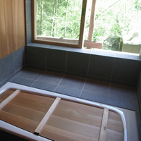 風呂ブタと入口の壁にはうるしをぬり込みました。